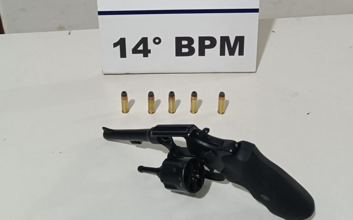 Ao chegarem ao local indicado, os militares realizaram buscas pessoais nos presentes. Durante a revista, encontraram na cintura do suspeito um revólver calibre .32, carregado com cinco munições intactas.